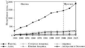 Рисунок 2 - Динамика потребления воды по континентам