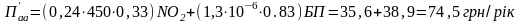 В розрахунку не враховувались рівні викидів СО та СН, тому що їх концентрації в атмосфері Харкова в1996 році не перебільшували допустимих рівней концентрації.