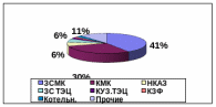 Наибольший вклад в совокупный валовый выброс вносят следующие предприятия города: ОАО “ЗСМК” - 40,7%; ОАО “КМК” - 29,8%; ОАО “НКАЗ” - 6,0%; ОАО “Западно-Сибирская ТЭЦ” - 5,9%; ОАО “Кузнецкая ТЭЦ” - 2,2%; ОАО “Кузнецкие ферросплавы” - 1,6%. Совокупно эти предприятия выбрасывают 86,2% загрязняющих веществ. Котельные города вносят 2,4% в общий валовый выброс. Несмотря на сравнительно небольшой процент валовых выбросов от котельных, они оказывают негативное влияние на атмосферу города, особенно в зимний период. Это объясняется размещением котельных непосредственно в жилых районах города, отсутствием на мелких котельных золоулавливающих устройств, низкой эффективностью очистки отходящих газов на котельных средней мощности и низкой высотой выбросов.
