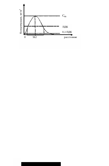 – определить расстояния (по две точки для каждого графика), на которых концентрация равна ПДК, т.е. определить зону (в виде кольца вокруг трубы) повышенного влияния предприятия на окружающую среду. Определить расстояние, на котором влияние предприятия практически отсутствует (дальнюю точку, на которой концентрация равна 0,1ПДК);