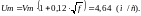 так как f < 100, то определим коэффициент m: