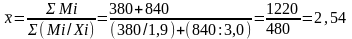 Если дан признак xi , нет его частоты fi, а дан объем M = xifi распространения явления, тогда расчет ведем по формуле средней гармонической взвешенной: