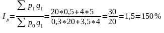 где p0 и р1 – цена единицы товара соответственно в базисном и отчетном периодах;