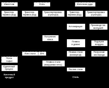 Для более четкого представления о приведенных выше понятиях дан пример схемы продукционной системы производства стали.
