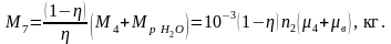 Общая масса воды (МН2О) на разбавление H2SO4 в реакторе-смесителе определяется как сумма M2 Н2О и Mр Н2О: