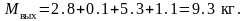 Мвы=М1+М2+М3= 2,5+2,6+4,2=9,3 кг, (1.5)