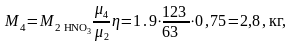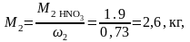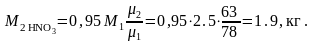 Так как НNO3 поступает в реактор-смеситель в виде раствора, то окончательно масса раствора HNO3 (М2) равна: