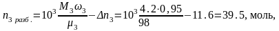 Количество молей серной кислоты (n3), поступающей на разбавление, в соответствии с материальным балансом производства и учетом начального разбавления определяется по выражению: