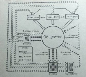 Можно привести обобщенную схему взаимосвязей общества и экосферы (рис. 2) [4, 10]: