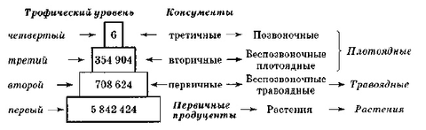 Стрелками на рисунке 1 показано направление перемещения энергии, а цифрами – относительное количество энергии, приходящей на трофический уровень.