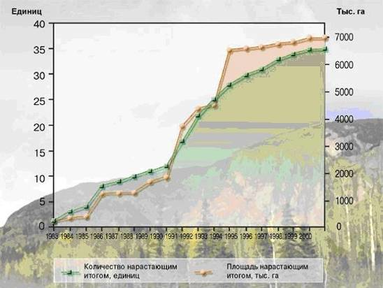 В результате расширения площади ряда заповедников в 2000 г. их суммарная официальная территория, по оценке, превысила 33,5 млн. га (Рис. 9).