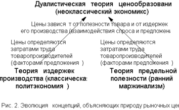 «Старая» неоклассика. В основе всех теорий, анализирующих рыночное хозяйство, лежит какая-либо концепция, объясняющая принципы ценообразования. Неоклассическая концепция сформировалась в результате синтеза разрабатываемой представителями классической политэкономии трудовой теории стоимости и маржиналистской теории предельной полезности (рис. 2).