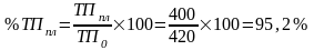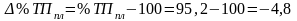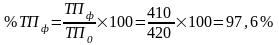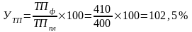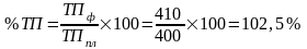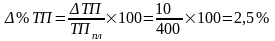 Δ%РПТП = ТП1 / ТП0 × 100 - 100 = 88500 / 89400 × 100 - 100 = -1,0 %