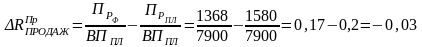 Вывод: в целом фактический уровень рентабельности ОПФ ниже планового на 0,07, а именно за счет снижения фондоотдачи - на 0,03, за счет снижения рентабельности продаж - на 0,04. Изменение удельного веса активной части ОПФ привело к увеличению рентабельности ОПФ на 0,104, снижение фондоотдачи активной части ОПФ повлекло снижение уровня рентабельности ОПФ на 0,136. За счет изменения прибыли от реализации продукции рентабельность ОПФ снизилась на 0,05, но увеличение объема выпуска продукции повлекло снижение уровня рентабельности ОПФ на 0,02.