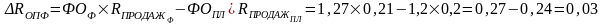 Рассмотрим влияние факторов второго порядка на уровень рентабельности ОПФ. Изменение рентабельности ОПФ составит за счет изменения: