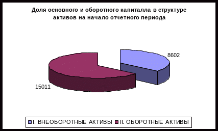 Совокупный капитал предприятия за анализируемый период уменьшился на 12% или на 2848 тыс. руб. Внеоборотные активы за исследуемый период уменьшились на 1105 тыс. руб., что составляет 12,8% . Оборотные активы уменьшились на 1743 тыс. руб. или на 11,6%. Данную динамику нельзя назвать положительной. Необходимо провести анализ и выяснить: «Почему происходит это уненьшение?». Возможно, влияет уменьшение спроса на продукцию, возможно не рациональное использование финансовых ресурсов. В целом , как видно из диаграмм основным капиталом предприятия являются оборотные активы. На мой взгляд это хорошо, так как деньги должны не «лежать», а работать и приносить прибыль.