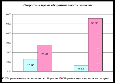 | Оборачиваемость запасов, в оборотах | 13,03 | 6,52 | -6,51 |