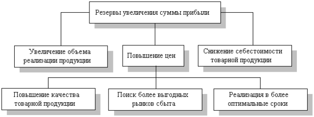 Рис.2. Схема подсчета резервов увеличения прибыли от реализации продукции