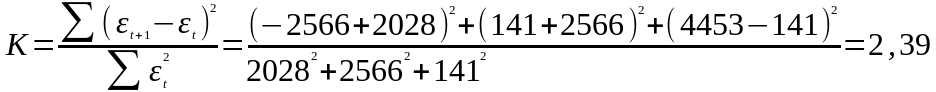 Под автокорреляцией понимается зависимость последующих уровней ряда от предыдущих. Проверка на наличие автокорреляции осуществляется по критерию Дарбина - Уотсона: