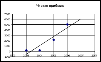 На графике построим линию тренда с прогнозом на 1 год. Чистая прибыль ожидается в 2007 году на уровне 6 000 тыс. руб.