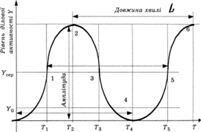 Довжина хвилі (L) характеризує ділянку зміни факторного показника (х) від початку циклу (x0) до його повного завершення (хk):
