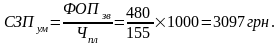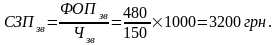 Тобто заробітна плата за звітом на 232 грн. або 7,8% (3200 грн. – 2968 грн.) більше, ніж було заплановано. Розрахуємо вплив кожного показника на середню заробітну плату. Для цього розрахуємо умовний показник – середню заробітну плату при звітному значенні одного показника та плановому значенні іншого:
