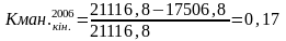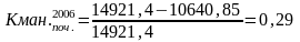 Наступним показником, який характеризує фінансову стійкість підприємства, є коефіцієнт маневрування власного капіталу, який показує, що на підприємстві на початок 2006 року - 29%, на кінець 2006 року – 17 %, а на кінець 2007 року – 7 % власного капіталу вкладено в оборотні кошти, а решту капіталізовано. На даному підприємстві достатньо високе значення цього показника, що забезпечує гнучкість у використанні власних засобів.