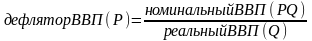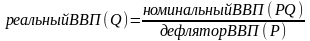 Дефлятор ВВП измеряет интенсивность инфляции или обратного процесса – дефляции, когда наблюдается снижение общего уровня цен в стране. Если величина индекса цен оказалась больше 1, то мы произвели дефлирование ВВП, т.е. элиминировали фактор инфляции. Если же индекс цен оказался меньше 1, то мы произвели инфлирование, т.е. очистили номинальный ВВП от влияния дефляции.