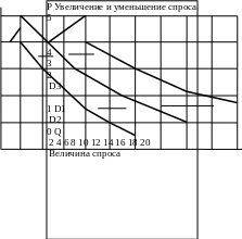 Во избежание путаницы под термином «изменение спроса» принято понимать изменение самой функции Q=D(P) («смещение» всей кривой спроса) под влиянием неценовых факторов, а под термином «изменение величины спроса» - реакцию спроса на изменение цены при постоянстве значений всех иных факторов (перемещение вдоль кривой спроса).