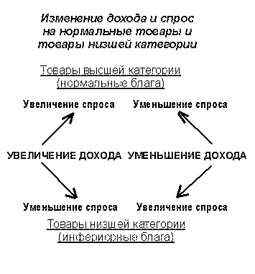 Доход. Воздействие на спрос изменения денежного дохода наиболее сложно. Для рассмотрения воздействия денежного дохода на спрос необходимо выделить две группы товаров: товары высшей категории (нормальные товары) и товары низшей категории.