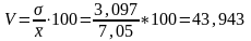 8) Находим коэффициент вариации: