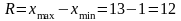 4) Находим размах вариации.