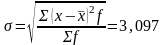 7) Находим среднее квадратическое отклонение: