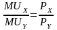 де MUX, MUY — гранична корисність блага X та Y, ютиль; PX, PY — ціна блага X та Y, грош. од.