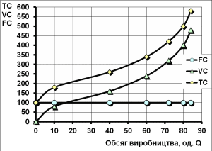 Підприємство максимізує прибуток при обсязі продукції Q = 80 од. з ціною 10 грн. за 5 од.
