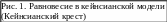 Кейнсианській хрест графічно представлений на рис.1. Крива фактичних витрат є бісектрисою (лінія 45º), оскільки фактичні витрати рівні випуску, і будь-яка точка цієї кривої відповідає цій умові. Крива планованих витрат є лінією, що має позитивний нахил (кут нахилу визначається величиною граничної схильності до споживання - mрс), витікаючу не з початку координат, оскільки завжди існує автономне споживання (С), не залежне від рівня доходу.