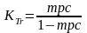 Алгебраїчне виведення формули мультиплікатора трансфертів. Оскільки в простій кейнсіанської моделі передбачається, що трансферти отримують тільки домогосподарства, та зміна трансфертів діє на споживчу функцію, яка з урахуванням трансфертів виглядає таким чином: