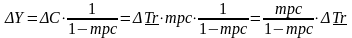 Щоб вивести формулу мультиплікатора трансфертів, пригадаємо, що зміна трансфертів означає зміну доходу: DТr = DРД.