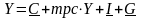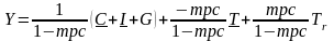 Підставимо споживчу функцію в рівняння сукупного доходу (випуску), потім перегрупуємо і в результаті отримаємо: