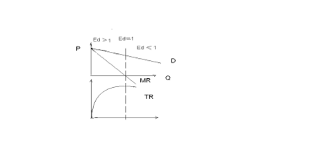 Когда совокупный доход увеличивается, кривая спроса эластична, т.е. когда предельный доход положителен; когда совокупный доход уменьшается, кривая спроса неэластична, т.е. когда предельный доход отрицателен; в точке где предельный доход максимален, коэффициент эластичности спроса по цене равен единице, т.е. предельный доход равен нулю:
