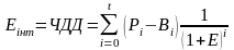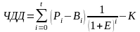 ЧДД визначається як сума ефектів за увесь розрахунковий період, що приведена до початкового кроку, або як перевищення інтегральних результатів над інтегральними витратами.