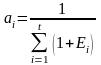 Відрізком часу, що відповідає кроку, може бути місяць, квартал, рік. Якщо ж норма дисконту змінюється у часі та на імовірному кроці дорівнює Еi то при a0=1 коефіцієнт дисконтування