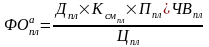 Факторную модель фондоотдачи оборудования можно расширить, если время работы единицы оборудования представить в виде произведения количества отработанных дней (Д), коэффициента сменности (Ксм) и средней продолжительности смены (П). Среднегодовая стоимость технологического оборудования равна произведению количества (К) и средней стоимости его единицы в сопоставимых ценах (Ц):