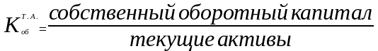Коэффициент обеспеченности текущих активов в собственном оборотном капитале характеризует уровень самофинансирования и финансовую устойчивость предприятия.