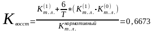 Рассчитав показатели, мы имеем ситуацию, когда оба показателя ниже нормы, а значит можно сделать первоначальный вывод о том, что предприятие не платежеспособно, а его структура баланса не рациональна. Чтобы исключить случайные выводы экспресс-оценки, рассчитаем коэффициент восстановления платежеспособности (Квосст):