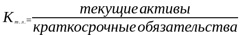 Проведем экспресс оценку финансового состояния. Для этого рассчитаем два показателя: коэффициент текущей ликвидности ( Кт.л. ) и коэффициент обеспеченности текущих активов (