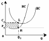 Якщо на якомусь інтервалі лінія ціни і граничного доходу розташовується вище за криву середніх витрат, то в точці рівноваги М фірма отримуватиме квазіренту, тобто прибуток, що перевищує нормальний рівень. При оптимальному обсязі виробництва Q2 середні витрати будуть рівні С2, отже, валові витрати складуть площу прямокутника OC2LQ2. Валова виручка (прямокутник OP2MQ2) буде більша, і площа заштрихованого прямокутника C2P2ML покаже нам загальну масу отримуваного надприбутка.