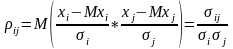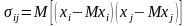 - центральный смешанный момент второго порядка, коэффициент ковариации i- й и j-й компонент вектора