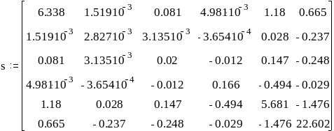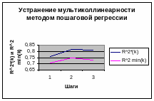 tb0 ->-tкр tb3 tb1 < tкр tb4 < tкр tb2 < tкр tb5 < tкр Среди всех коэффициентов значимыми являются b0, по такой модели прогноз сделать не представляется возможным, поскольку все коэффициенты регрессии при переменных не значимы. На этом регрессионный анализ можно завершить, так как значимых переменных не обнаружено. 2. Проанализировать матрицу парных коэффициентов корреляции на наличие мультиколинеарности, если мультиколлинеарность присутствует устранить методом пошагового отбора переменных, отобрать наиболее информативные переменные и с помощью них построить модель регрессии, оценить ее значимость. Коэффициент ковариации нормированных случайных величин называется коэффициентом корреляции, или коэффициентом парной корреляции. где Для удобства расчета корреляционной матрицы, предварительно рассчитывают ковариационную матрицу . Ковариационная матрица определяется как математическое ожидание произведения центрированного случайного вектора на этот транспонированный вектор Матрица где Рассмотрим матрицу исходных данных (см. Приложение 1) 1. Найдем центрированную матрицу Найдем оценку вектора где Используя пакет STADIA (Раздел описательная статистика), получаем вектор Согласно приведенной формуле 2. Рассчитываем матрицу Используя пакет STADIA (меню преобразований), получаем: Оценку ковариационной матрицы получим путем умножения матрицы Обозначим оценку ковариационной матрицы S, используя пакет MathCad находим: оценка ковариационной матрицы. Для расчета ковариационной матрицы воспользуемся формулой (1) и определением ковариационной матрицы (2), получаем следующую оценку корреляционной матрицы: Данный расчет можно провести на прямую, используя пакет STADIA, но наша цель бала показать весь процесс расчета корреляционной матрицы. Проанализируем корреляционную матрицу. 1 – я строка и 1 – столбец это признак у , как видим наибольшая связь наблюдается между признаками х7 и х14 очень тесная (-0,938) , если анализировать парную связь между факторными признаками, то можно заметить наибольшую связь между признаком х5 и х17 (-0,938). Устранение мультиколлинеарности с помощью метода пошаговой регрессии Устраним мультиколлинеарность методом пошаговой регрессии, который предполагает, что на каждом шаге мы будем включать в уравнение регрессии тот признак, который будет вызывать наибольшее приращение коэффициента детерминации. Шаг 1 Строим уравнения регрессии Находим максимальный коэффициент детерминации Вычисляем нижнюю границу коэффициента детерминации Используя пакет STADIA определяем: Переменная k X17 0.191 0.7117 1 Шаг 2 Строим уравнения регрессии Находим максимальный коэффициент детерминации Вычисляем нижнюю границу коэффициента детерминации Используя пакет STADIA определяем: Переменная k X7 0.7618 0.7117 1 Х7,Х9 0.8118 0.750 2 Шаг 3 Строим уравнения регрессии Находим максимальный коэффициент детерминации Вычисляем нижнюю границу коэффициента детерминации Используя пакет STADIA определяем: Переменная k X7 0.7618 0.7117 1 Х7,Х9 0.8118 0.750 2 Х7,Х9,X3 0.80953 0.735 3 Процесс прекращаем поскольку, Подробный анализ, выполненный с помощью программы “Stadia”, приведен в Приложении 1. Граф.1 Подробные расчеты см. Приложение 1 Таким образом , из анализа исключаются все факторные признаки, кроме Х7,X9 Проверить построенную модель на гетероскедастичность. Построить обобщенную модель множественной регрессии (сл