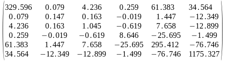 Матрица Х имеет размерность 6х53, в первой строке стоят единицы.